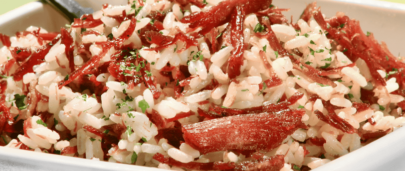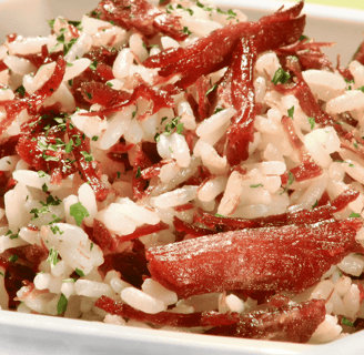 Arroz carreteiro has its roots in the culture of the southern Brazilian states, particularly Rio Grande do Sul, Santa Catarina, and Paraná. It emerged during the colonial period and became a symbol of the life of the carreteiros – the people who, on horseback, transported goods between the countryside and cities, often traveling long distances under difficult conditions. The dish originated from the adaptations made by carreteiros with the ingredients that were readily available to them on their journeys, such as rice, dried beef, bacon, and spices. Dried beef was a form of food preservation, as it could be transported for long periods without spoiling, making it a staple in many rustic dishes of the time. Over time, arroz carreteiro spread to other regions of Brazil, gaining variations according to local ingredients and tastes. In some versions, for example, dried beef may be replaced with salted pork or sausage, and the dish may take on special regional flavors, such as leeks or bell peppers. Today, arroz carreteiro is considered an essential dish in many Brazilian homes, often prepared for celebrations and family gatherings. The recipe endures with its historical roots, but also with the adaptation and creativity of Brazilians who have made this dish a true delicacy.
